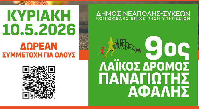 Για ένατη χρονιά, ο δήμος Νεάπολης-Συκεών και η Κοινωφελής του Επιχείρηση (ΚΕΥΝΣ) καλούν μικρούς και μεγάλους όλων των ηλικιών, από ολόκληρη τη Θεσσαλονίκη και τους γύρω νομούς, στο ετήσιο αθλητικό τους ραντεβού την Κυριακή 10 Μαΐου, στη...